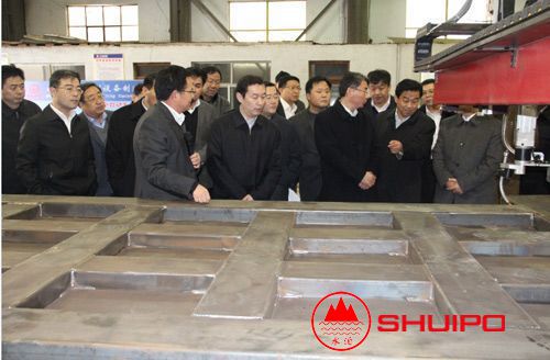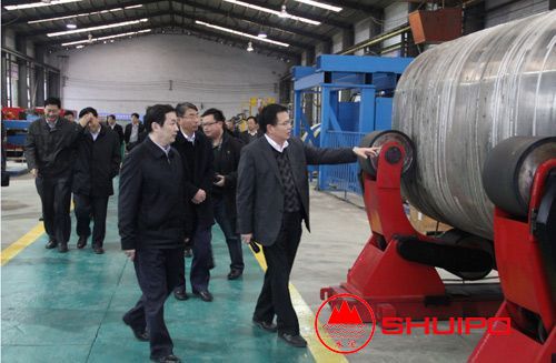 2014年3月12日,山東省委省政府張超超副省長(圖中)一行在市縣領導的陪同下,來公司進行視察、調研。公司劉憲福董事長向張超超副省長,詳細介紹了“數控廂板自動焊接機”“異形罐體環縫TIG自動焊機”等多個公司自主研發的新產品。